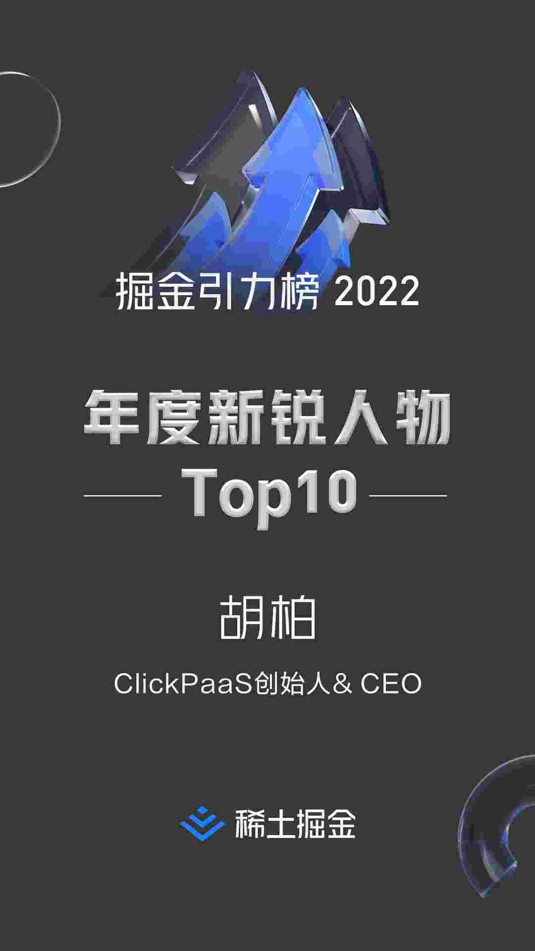 2022年1月6日,,,稀土掘金社区第一届「掘金未来大会」成功举办,,,,会上发布了“2022 稀土掘金引力榜 年度新锐人物”榜单,,,,上海爱湃斯科技有限公司(简称GOPAY钱包)创始人及CEO胡柏实力入选年度新锐人物TOP 10。。